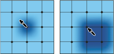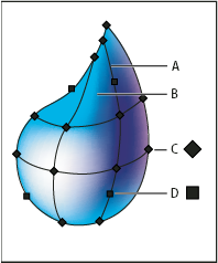 - Ponto de malha: é a interseção de duas linhas de malha. Ela compartilha as mesmas propriedades dos pontos de âncora, mas tem a capacidade adicional de aceitar cor. Você pode visualizar, adicionar, modificar, mover e excluir pontos de ancoragem na malha.