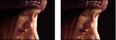 Der Effekt „Korn reduzieren“ dient zum Entfernen von Körnung oder visuellen Störungen. Dieser Effekt versucht anhand ausgefeilter Signalverarbeitungs- und statistischer Berechnungen das Bild so wiederherzustellen, wie es ohne Körnung oder Störungen aussehen würde. Es gibt zwar viele Methoden, mit denen sich Störungen in einem Bild reduzieren lassen, z. B. mit dem Effekt „Gaußscher Weichzeichner“ oder „Median“, dabei werden jedoch stets die Schärfe und Glanzlichter beeinträchtigt. Der Effekt „Korn reduzieren“ hingegen kann feine Details von Störungen unterscheiden und daher weitgehend erhalten.