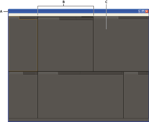 Gruppierungsbereiche befinden sich in der Mitte eines Bedienfelds oder einer Gruppe sowie entlang des Registerkartenbereichs eines Bedienfelds. Beim Ablegen von Bedienfeldern in einem Gruppierungsbereich werden die Bedienfelder zu einer Gruppe zusammengefasst.