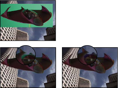 El efecto Mejora de incrustaciones recupera el detalle de canal alfa de una escena incrustada mediante un efecto de incrustación típico, incluida la recuperación de los detalles perdidos debido a artefactos de compresión.