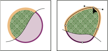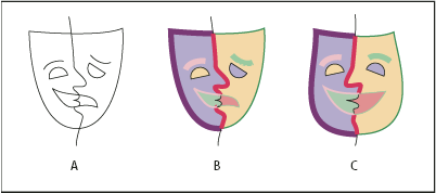 Cada ruta dentro de un grupo de Live Paint permanece completamente editable. Cuando mueves o ajustas la forma de una ruta, los colores que habías aplicado previamente no se quedan donde estaban, como en las pinturas de medios naturales o programas de edición de imágenes. En su lugar, Illustrator vuelve a aplicarlos automáticamente a las nuevas regiones formadas por las rutas editadas.