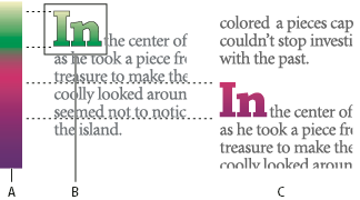 Seleccione el texto y conviértalo en contornos (trazados editables) y, a continuación, aplique el degradado a dichos contornos. Ésta es la mejor opción para un texto corto en su propio marco de texto. El degradado siempre estará anclado a los contornos, no al marco de texto, y los contornos se ajustarán al resto del texto. No obstante, los contornos actuarán como un único gráfico integrado en el marco de texto, por lo que no se podrá editar el texto. Además, las opciones tipográficas dejarán de tener efecto; por ejemplo, el texto convertido en contornos no tendrá separaciones.