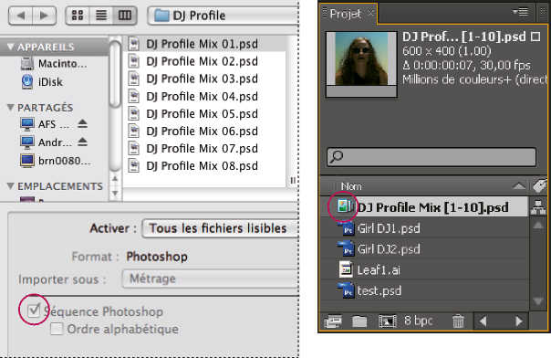 Pour importer des séquences de fichiers Camera Raw, vous devez suivre la même procédure que pour importer des séquences d’autres types de fichier d’images fixes.