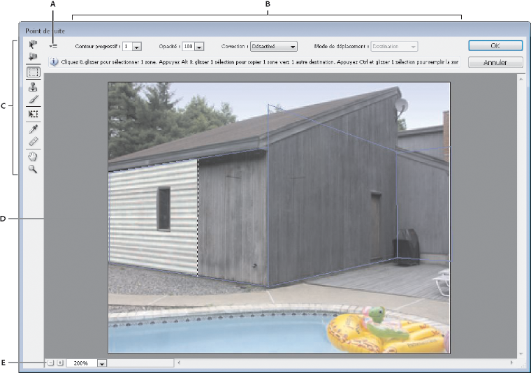 1. Sélectionnez l’outil Tampon de duplication  dans Point de fuite.