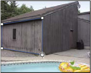 7. Faites glisser le pointeur sur la partie de l’image à peindre. Maintenez la touche Maj enfoncée et faites glisser pour dessiner une ligne droite s’adaptant à la perspective du plan. Vous pouvez également cliquer sur un point avec l’outil Tampon, puis appuyer sur la touche Maj et cliquer sur un autre point pour dessiner une ligne droite en perspective.