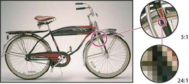 Le immagini bitmap contengono un numero fisso di pixel, solitamente misurato in pixel per pollice (ppi). Un’immagine ad alta risoluzione contiene più pixel, logicamente più piccoli, di un’immagine delle stesse dimensioni ma a bassa risoluzione. Ad esempio, un’immagine di 1 x 1 pollice con una risoluzione di 72 ppi contiene 5184 pixel (72 pixel in larghezza x 72 pixel in altezza). La stessa immagine con una risoluzione di 300 ppi conterrebbe 90.000 pixel.