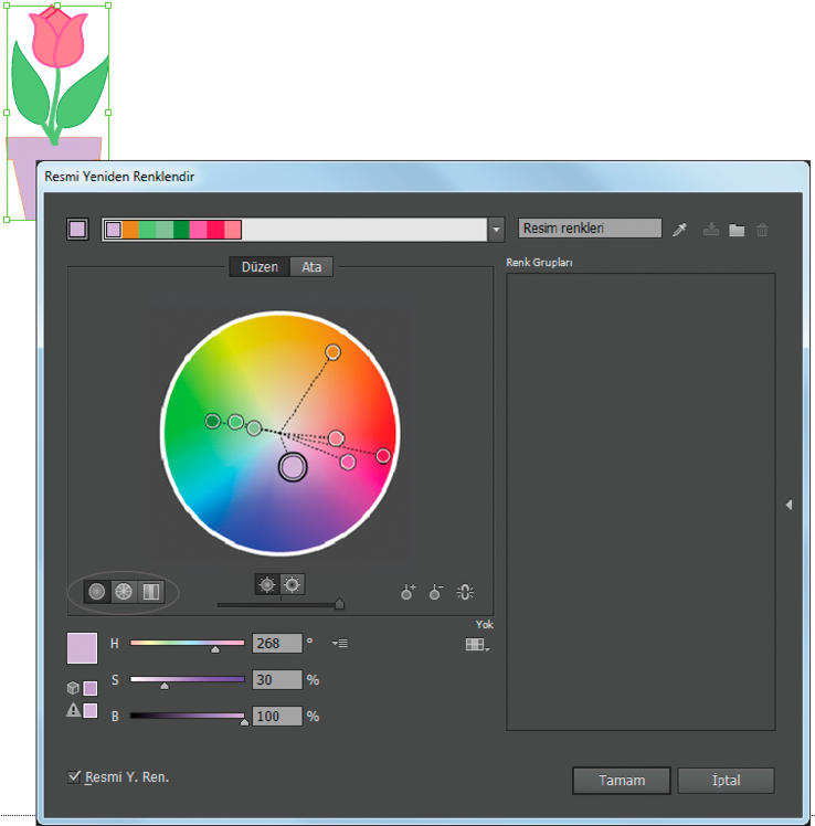 Uyum kuralını ve birincil renk gruplarını seçmek için açılır menüyü seçin. |