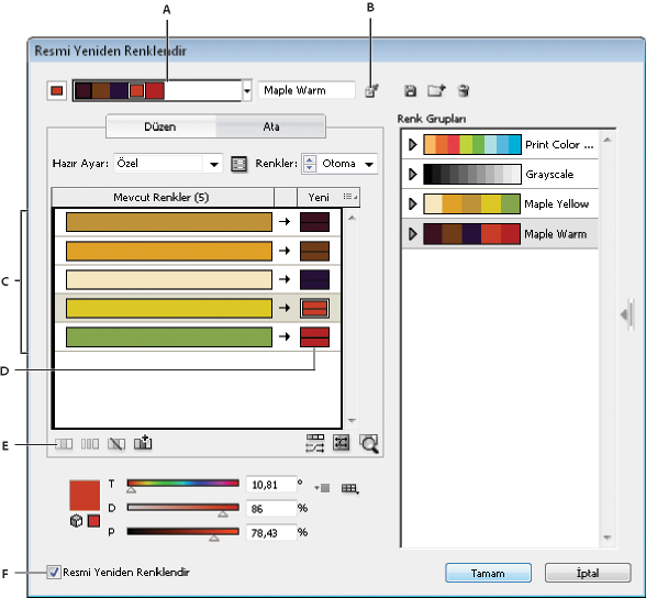 Renk örneği grubunu, renk örneği kitaplığındaki renklerle sınırlama |