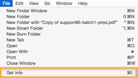 Choose File > Get Info.