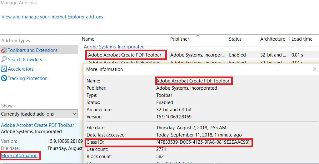 Each add-on that is blocked or disabled in Internet Explorer is represented by a sub key that has the class identifier (CLSID) of the add-on that is blocked.