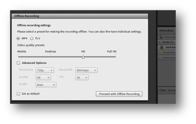 Users can now create offline recordings in MP4 format. Users can also choose from among the available quality presets or set their own manual settings for the same before starting offline conversion.