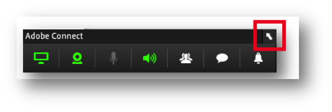 If the presenter needs to go back to the full meeting room to access functionalities not available in the panel, the option is available on the right corner of the panel.