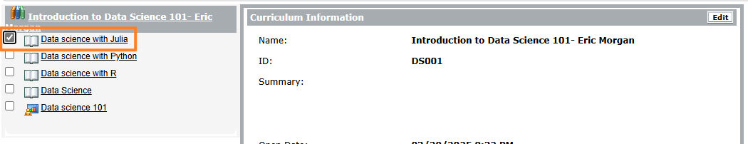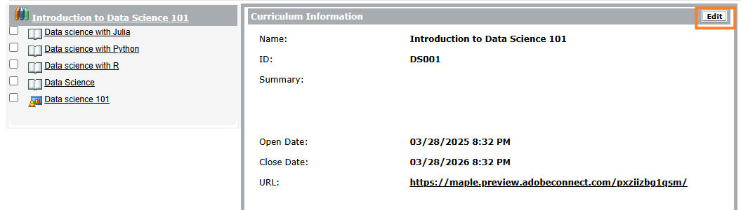 Select Edit in the Curriculum Information section.