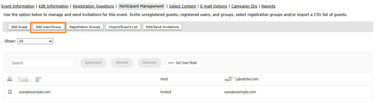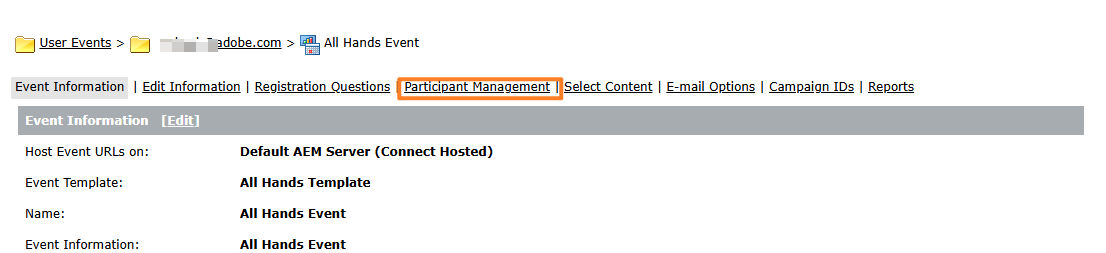 • If you are the administrator, you can provide special access to specific users or groups to perform detailed event-related configuration tasks. These tasks include editing group membership, configuring event analytics, creating campaign IDs, and managing event tags and email aliases.