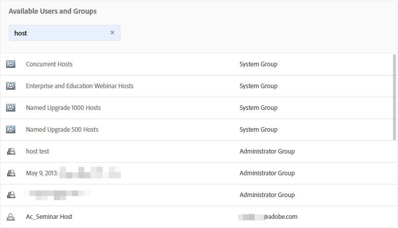 3. In the Available Users and Groups list, select a user or group and click Add. You can also click Search to find a user or group that is not listed.