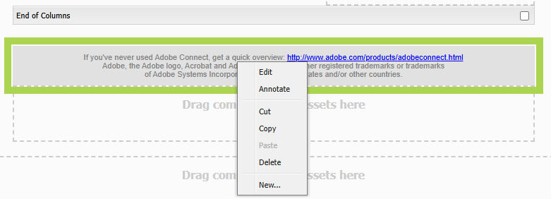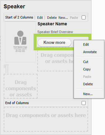 Add components to a column. Right-click the placeholder and select New to add a component.