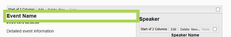 Event info tab showing the options to drag the components to the template Event info tab showing the options to drag the components to the template -