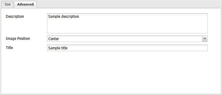 Select the Advanced tab to add the description, image position (left, right, or center), and the title of the image.