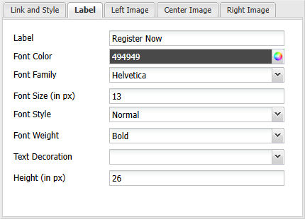 Label tab interface Label tab interface - Add an image that will appear on the left, center, or right side of the button component. Select the image placeholder and browse and upload an image from your device.