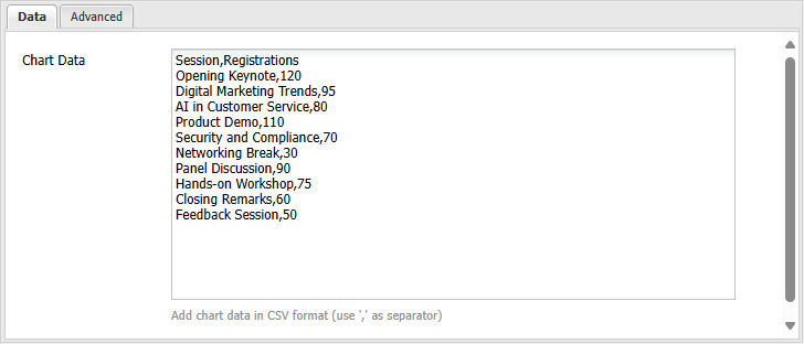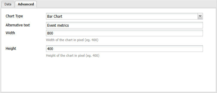 - Width and Height fields: Specify the chart dimensions in pixels.