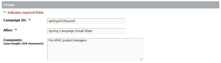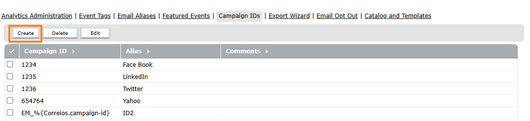 Select Create in the Campaign IDs section.