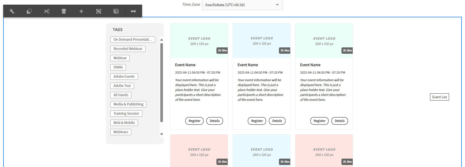Select the Event List component.