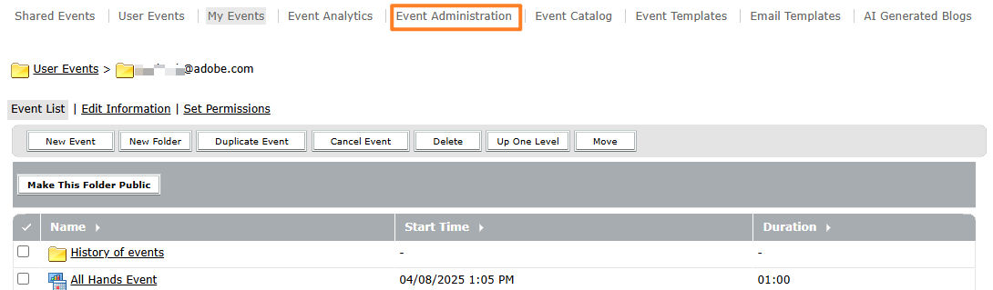 Select Event Administration on the Events page.
