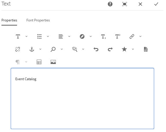 Select the Configure icon. Change the name of the default event catalog and change its text styles.