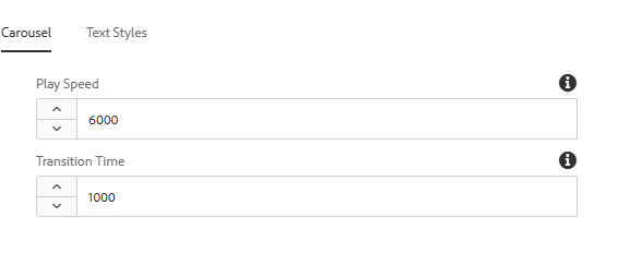 Carousel showing the options for Play Speed and Transition Time Carousel showing the options for Play Speed and Transition Time -