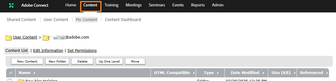 Content tab in the Adobe Connect Central interface Content tab in the Adobe Connect Central interface -