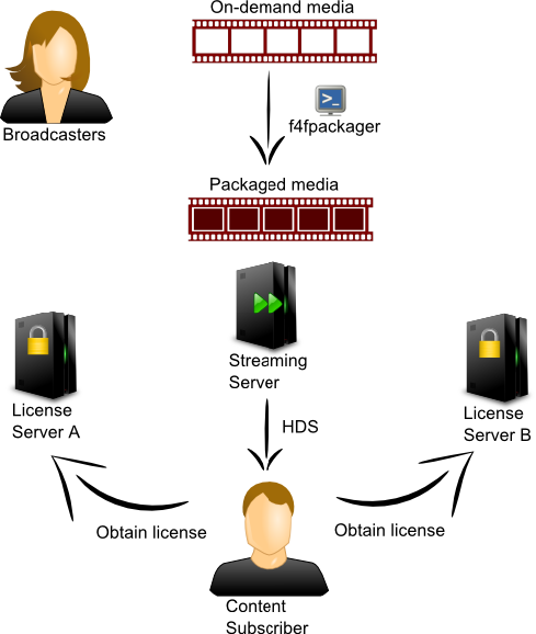 Broadcasters who use different license servers for testing and production, package the content individually for each license server causing bottlenecks during testing and publishing. The f4fpackager enhancements enable broadcasters to package content only once using multiple Adobe Access license servers.