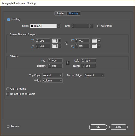 - من قائمة لوحة Paragraph (Window > Type and Tables > Paragraph)، اختر Paragraph Shading.