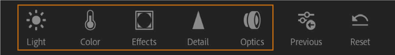 To make local adjustments to your photo, select the type of adjustment you want to make from the Editing panel at the bottom of your screen.