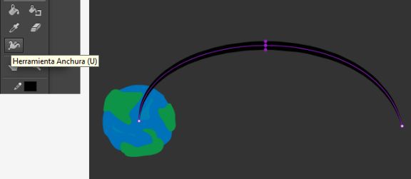 - Seleccione la herramienta Anchura (U) de la caja de herramientas, haga clic en cualquier lugar del trazado y arrastre para variar el grosor del trazado.