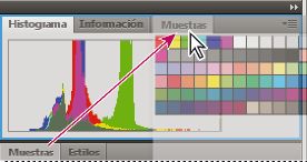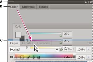 Para minimizar o maximizar un panel, un grupo de paneles o una pila de paneles, haga doble clic en una ficha. También puede hacer doble clic en el área de las fichas (el espacio vacío que hay junto a ellas).