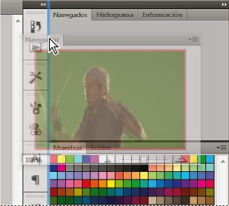 Para cambiar el tamaño de un panel, arrastre cualquiera de sus lados. A algunos paneles, como el panel de color en Photoshop, no se les puede cambiar el tamaño arrastrándolos.
