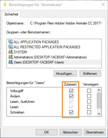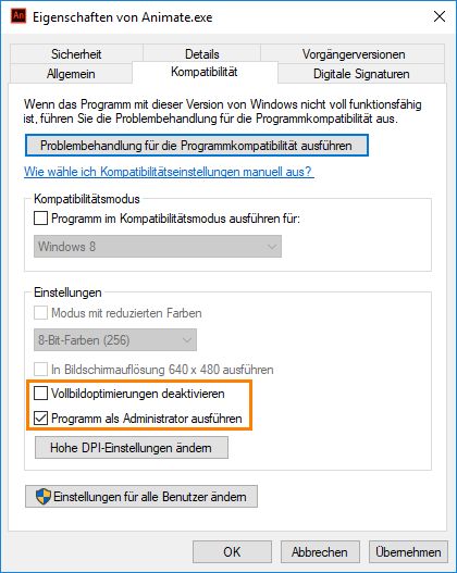 Klicken Sie mit der rechten Maustaste auf Animate.exe und wählen Sie Als Administrator ausführen unter folgendem Pfad: