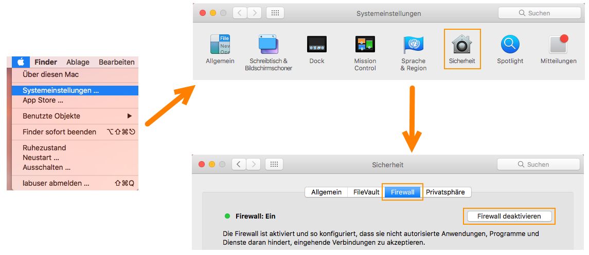 Um die Firewall auszuschalten, führen Sie die folgenden Schritte aus: