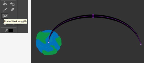 • Wählen Sie das Breite-Werkzeug (U) auf der Werkzeugleiste aus, klicken Sie an eine beliebige Stelle des Pfads und ziehen Sie, um die Stärke des Pfads zu variieren.