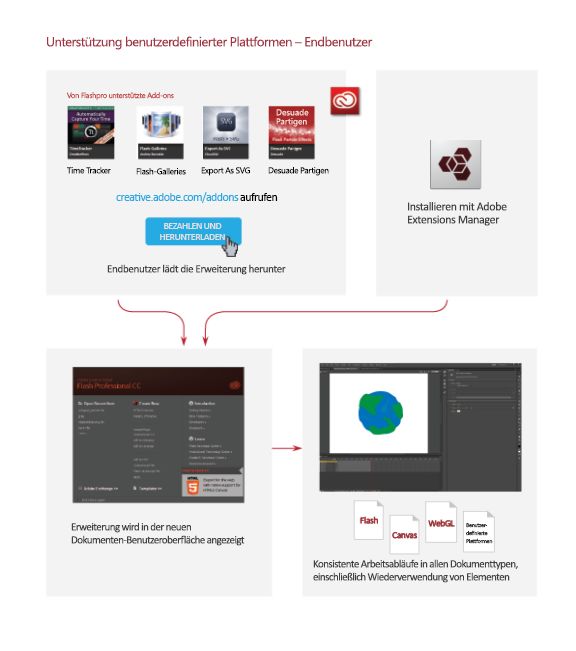 Entwickler, die Add-Ons für Animate erstellen, können zum Entwickeln und Bereitstellen ihrer Plug-ins folgendermaßen vorgehen:
