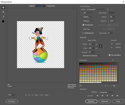 - Exporteinstellungen für Bilder und GIF-Dateien