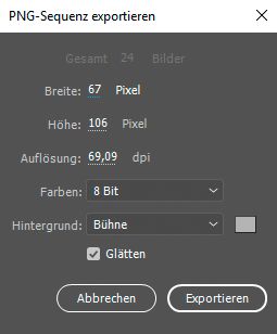 - Wenn es auf der Hauptzeitleiste mehr als einen Frame gibt, beginnt der Export bei Frame 2.