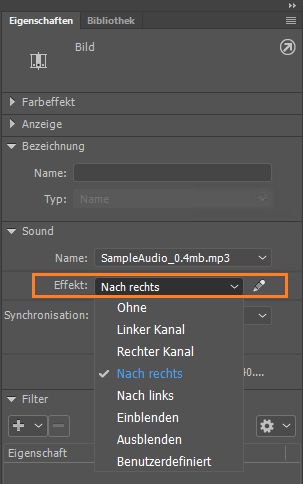 4. Wählen Sie unter Eigenschaften > Sound die Option „Effekt“ aus.