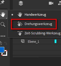 Animate enthält ein neues Drehwerkzeug, mit dem Sie die Bühnenansicht vorübergehend drehen und so in einem bestimmten Winkel zeichnen oder malen können, ohne die Objekte auf der Bühne dauerhaft zu drehen, wie dies beim Werkzeug „Frei transformieren“ der Fall ist. Sie können die Bühne unabhängig vom ausgewählten Werkzeug schnell drehen, indem Sie die Umschalttaste und die Leertaste gleichzeitig gedrückt halten und dabei die Ansicht durch Ziehen des Mauszeigers drehen.
