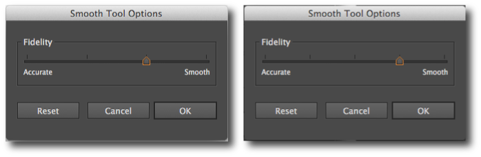 Doppelklicken Sie auf das Symbol für das Glätten-Werkzeug in der Werkzeugpalette, um das Dialogfeld Optionen für das Glätten-Werkzeug zu öffnen. Ein vorgabebasierter Genauigkeitsregler ist für das Glätten-Werkzeug verfügbar.