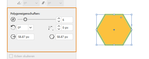- Eckenradius: Legt die Radien für die Ecken des Polygons fest.