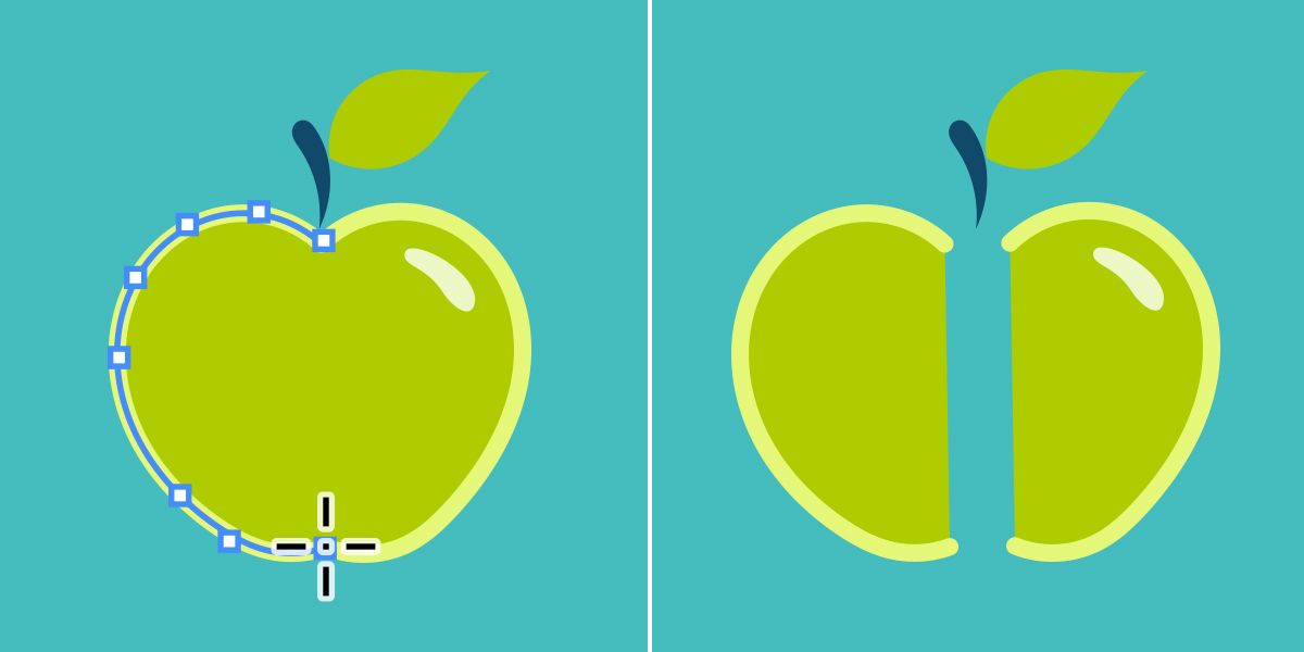 Hiermit kannst du einen Pfad oder Elemente an einem Ankerpunkt oder entlang eines Segments teilen.