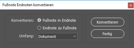 • Wählen Sie „Fußnote zu Endnote“ aus, um Fußnoten zu Endnoten zu konvertieren.