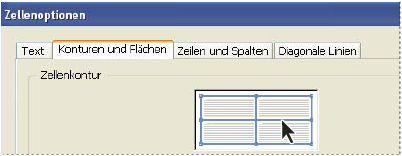 Über das Dialogfeld „Zellenoptionen“, das Konturbedienfeld oder das Farbfeldbedienfeld können Sie Zellen Konturen und Flächen hinzufügen.