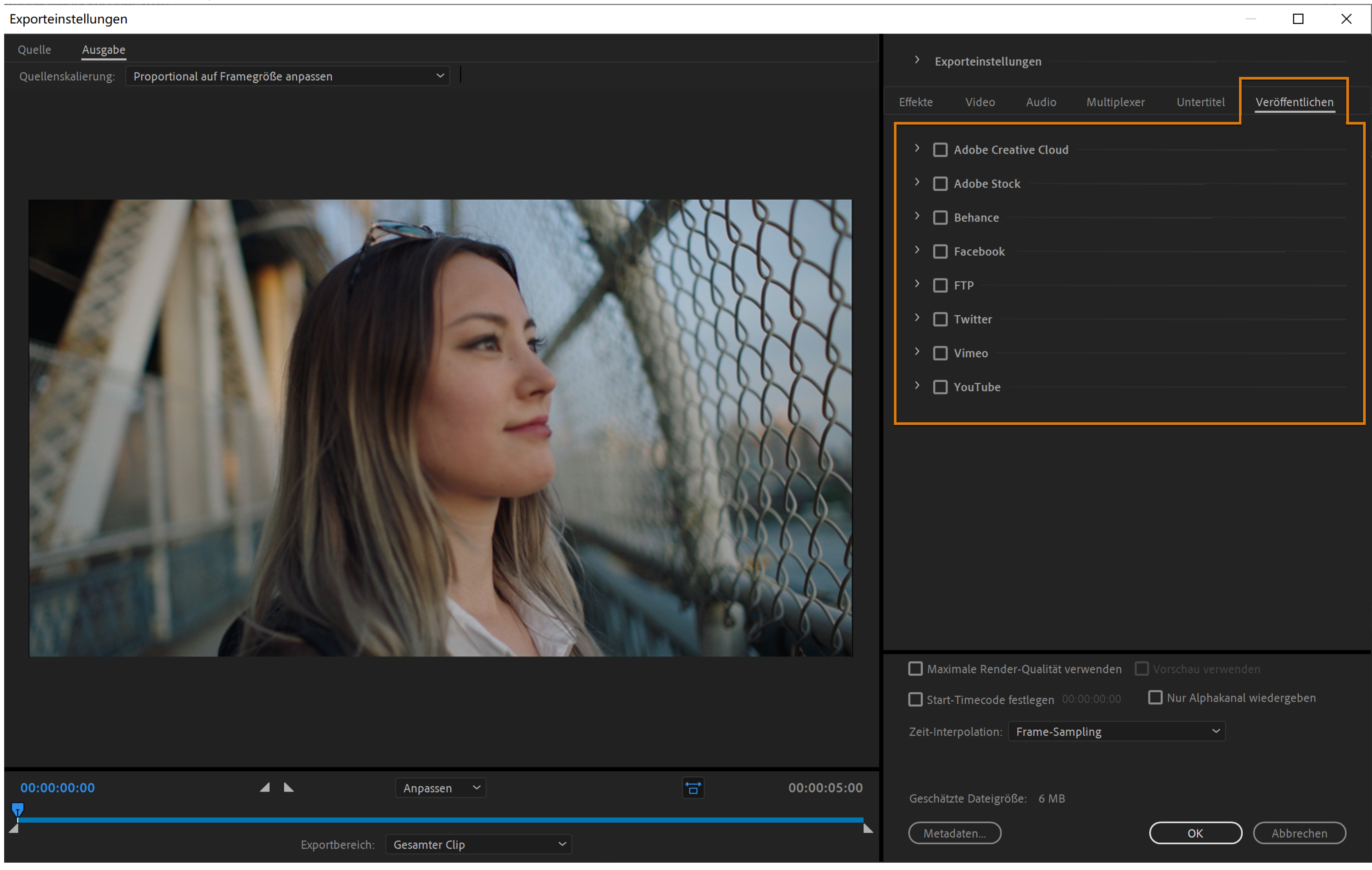 - Veröffentlichungseinstellungen in Adobe Media Encoder